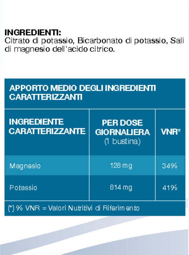 Formulazione completa con tre sali minerali alcalinizzanti